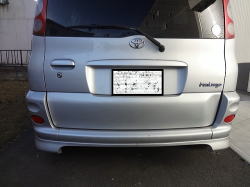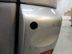 外観から取付位置を検討します。プラスチックバンパー部分にセンサーを設置します。