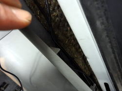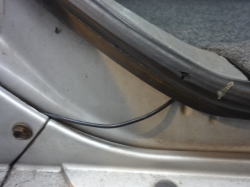 センサーの配線を引き回します。バンパーの隙間を使ってラバーの下から社内に取り回しました。ラバーの下側なので水漏れの心配も少ないので